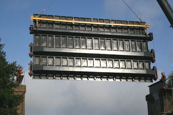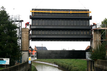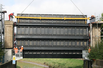 | The purpose of this gate is two-fold. First it is designed to allow water to flow beneath the gate from the river Idle to the river Trent and second to allow flow in the opposite direction. The gate is a replacement of an original design and includes a novel stiffening arrangement, comprising 3 horizontal stiffening beams, which reduce the overall horizontal depth of the structure and prevent ingress of water-borne residue. |